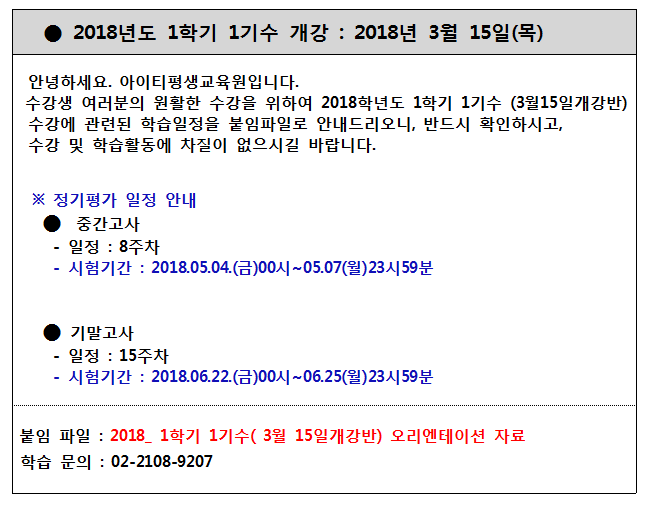 2018년 1학기 1기수 (3월15일 개강반) 오리엔테이션 자료집